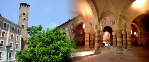Im Nordwesten von Asti befindet sich die Abtei von Vezzolano, eines der berühmtesten Bauwerke romanisch-gotischen Baustils, im Piemont. Sie soll nach der Überlieferung von Karl dem Großen im Jahre 773 errichtet worden sein soll, nachdem er bei einer Jagdpartie in der Nähe der Umgebung der heutigen Abtei eine Erscheinung gehabt hatte. Einzigartig im Piemont ist die Fassade mit ihren in drei Reihen angeordneten Blindgalerien. Das rechte Schiff im Innenraum der Abtei, die ursprünglich drei Kirchenschiffe hatte, nimmt heute den Kreuzgang ein. Gleich beim Eintritt in die Abtei kann der Lettner bewundert werden, der das zentrale Kirchenschiff in zwei Bereiche teilt. Auf dem Hochaltar eine schöne Terracotta-Gruppe aus dem Jahre 1450, welche die Gottesmutter mit dem Kinde darstellt, daneben kniend - Karl der Große und der hl. Augustin; über die gesamte Figurengruppe spannt sich ein mit Blumenmotiven verzierter Baldachin im gotischen Stil. Durch eine kleine Türe auf der rechten Seite der Abtei gelangt man in den Kreuzgang, in dem sogleich ein interessantes Kapitell auffällt, in das die wichtigsten Episoden aus dem Leben der Mutter Gottes eingemeißelt sind. |